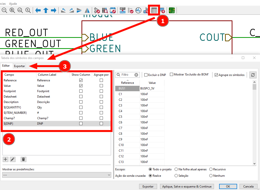 Bom dia, estou de volta em busca de mais uma informação, estou gerando PDF de um projeto de uma placa de amplificador, uma folha quero exibir somente as referencias dos componetes, em outra quero exibir os valores dos componentes, existe uma opção para selecionar entre referencia e valor de todos os componentes de uma só vez, ou tem que ser feito manualmente de um a um?