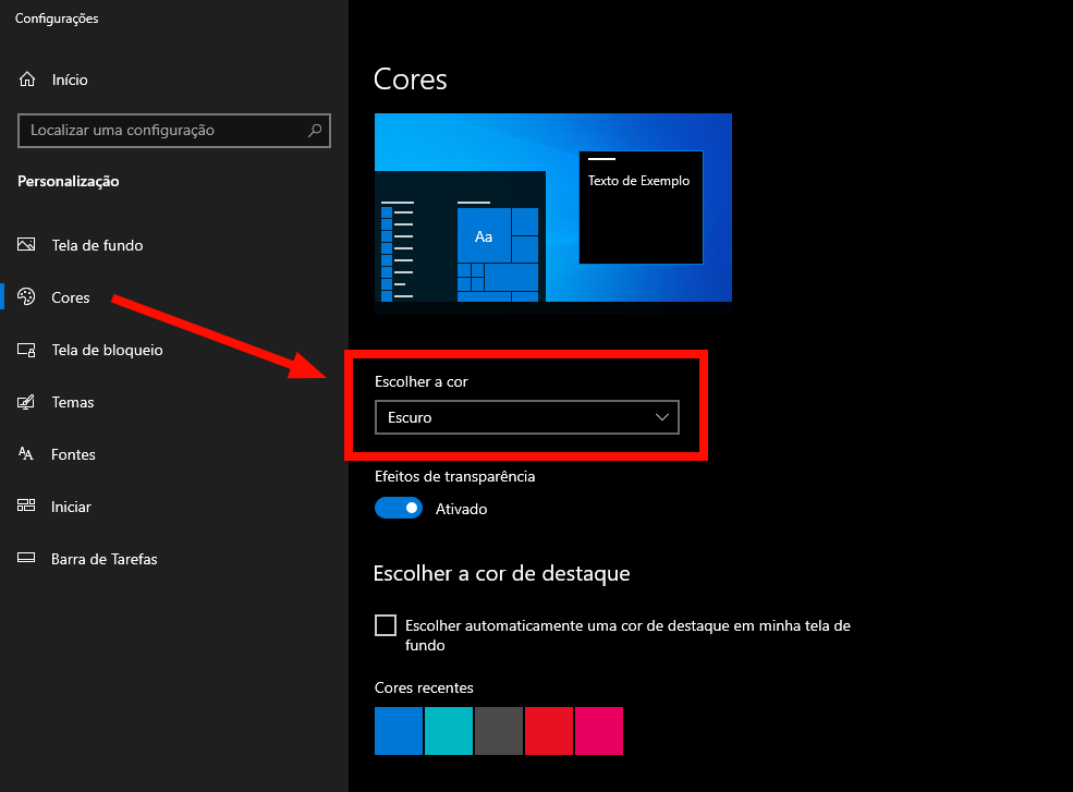 Uma ressalva importante: após baixar e instalar o KiCad Huaquiu, caso utilize o Windows, é necessário que você modifique a cor do seu Windows para "Escuro".